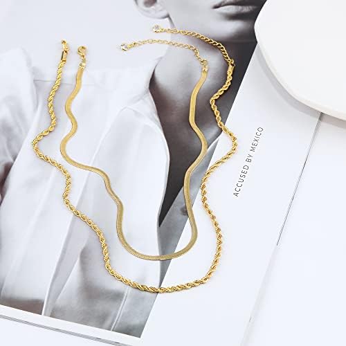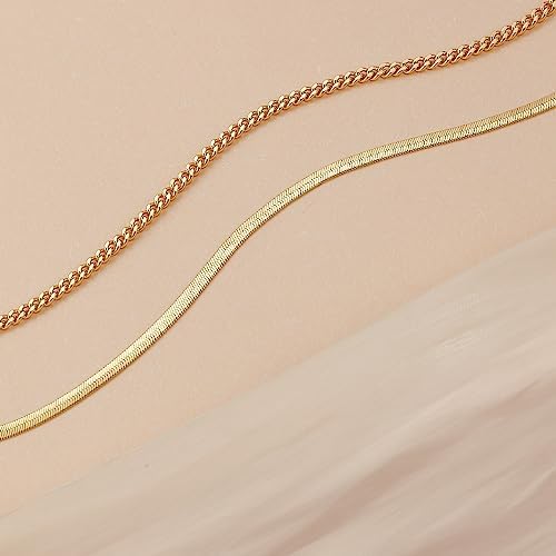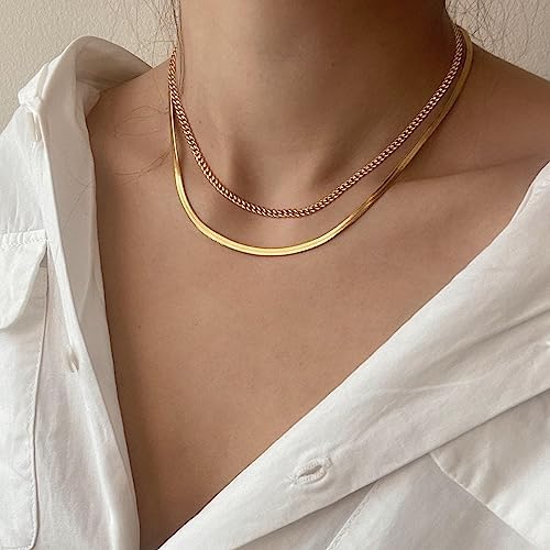 Herringbone Necklace for Women,Dainty Gold Necklace,14k Gold Plated Snake,Gold Chain Choker Necklaces,Simple Gold Layered Necklaces,Gold Jewelry Gift for Women