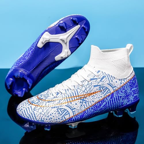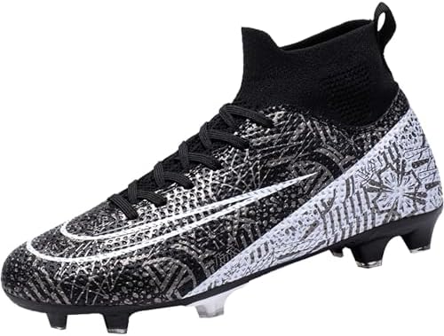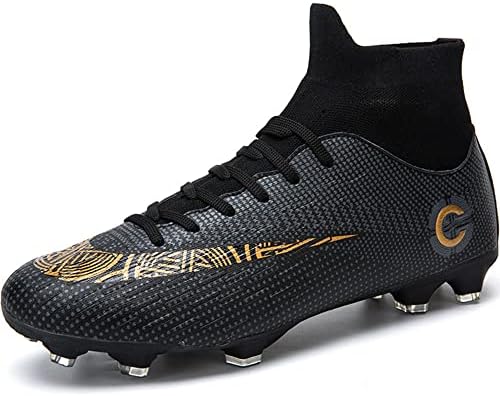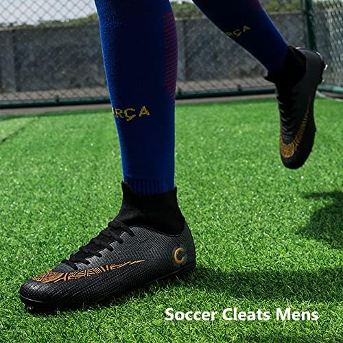 HHY Men's Soccer Cleats Football Shoes High-Tops Lace-Up Non-Slip Spikes