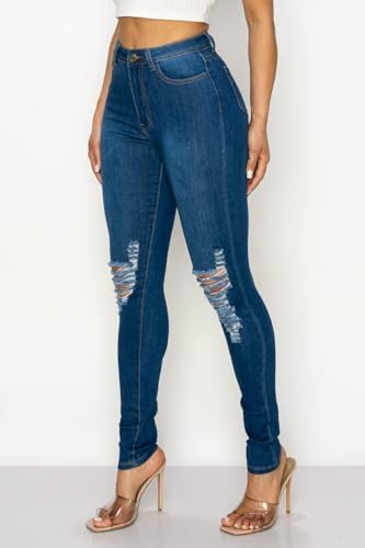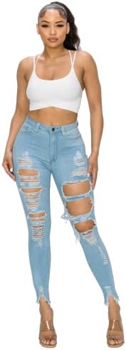 Women's Ripped Destroyed Skinny Jeans & Jeggings Pull-On Elastic Waist Stretch Denim Pants Regular-Plus Size
