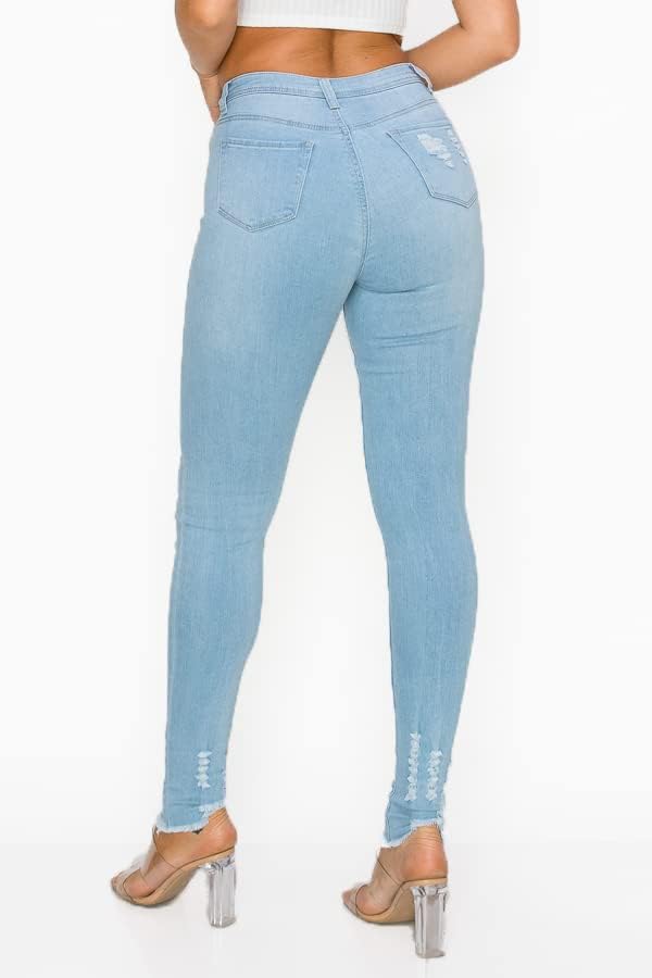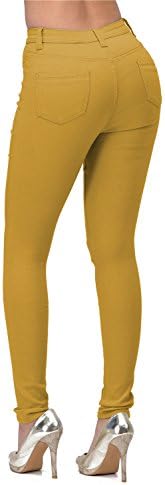 High Waisted-Rise Colored Stretch Skinny Destroyed Ripped Distressed Jeans for Women Olive Mustard RED