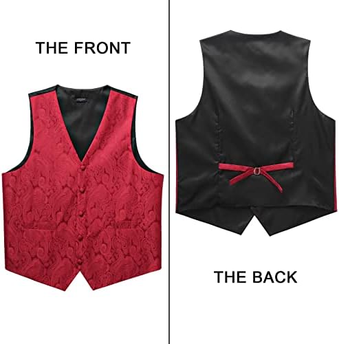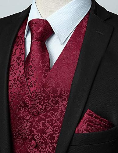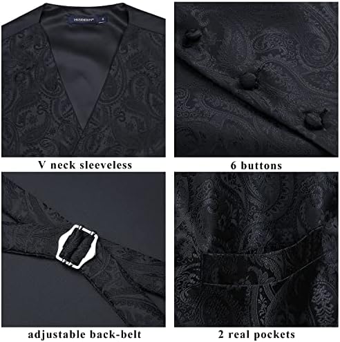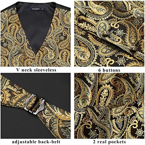 HISDERN Mens Vest Tie Set 3PC Formal Waistcoat Paisley Floral Jacquard Necktie Pocket Square Suit Vests Wedding Party