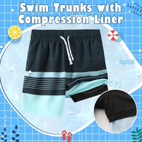 HODOSPORTS Boys Swim Trunks with Compression Liner Swimwear Bathing Suits Swim Shorts with Pockets