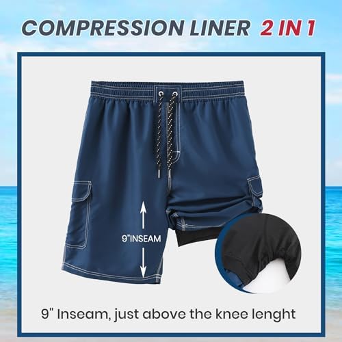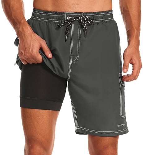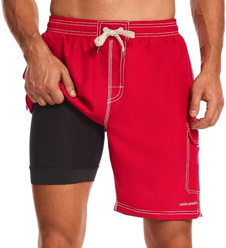 HODOSPORTS Men's 9" Swim Trunks Quick-Dry with Compression Liner (Regular&Extended Sizes)