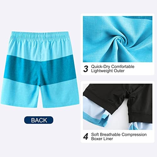 IRELIA 2 pack Boys 2 in 1 Swim Trunks Boxer Brief Liner Compression Swimming Shorts Quick Dry Swimwear