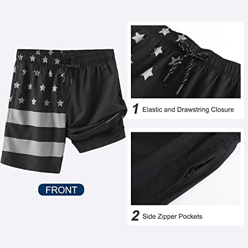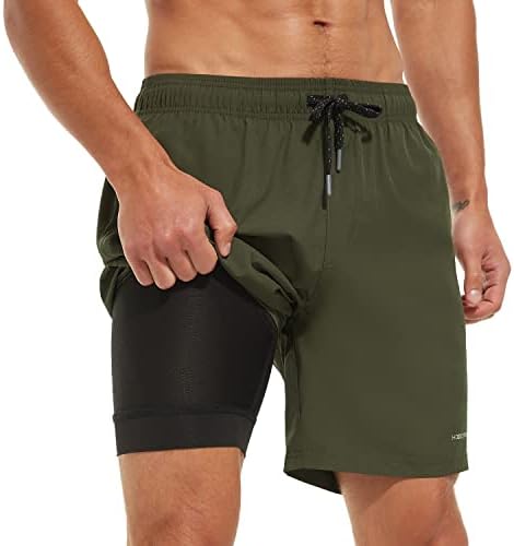 HODOSPORTS Mens Swimsuit Trunks 7" Quick-Dry Swim Shorts with Compression Liner and Zipper Pockets