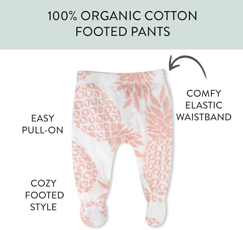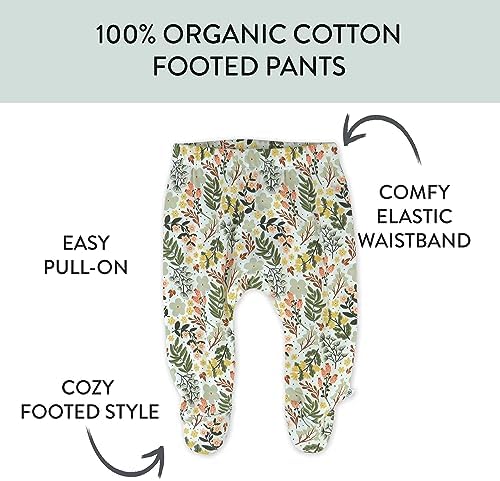 HonestBaby 3-Pack Footed Pants Roomy Fit Pull on Bottoms 100% Organic Cotton for Infant Baby Boys, Girls, Unisex