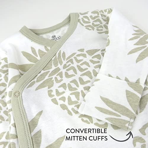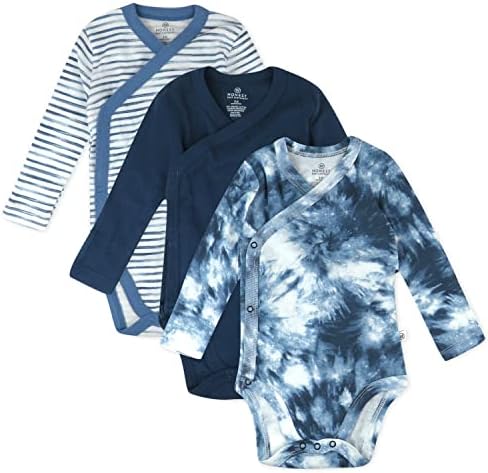 HonestBaby unisex-baby 3-pack Long Sleeve Side-snap Kimono Bodysuits Organic Cotton for Infant Baby Boys, Girls, Unisex