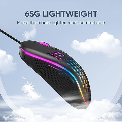 Honeycomb Wired Gaming Mouse, USB/USB-C PC Game Mice with RGB Backlight, 6 Programmable Buttons, 6 Adjustable DPI Up to 7200 for Windows/PC/Mac/Laptop Gamer -Black