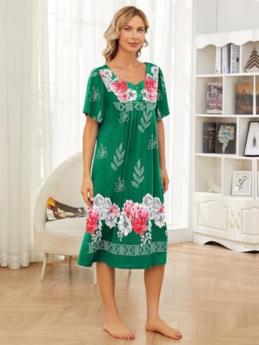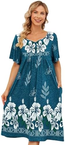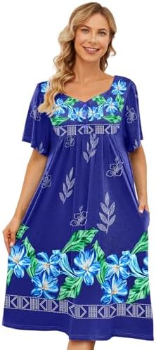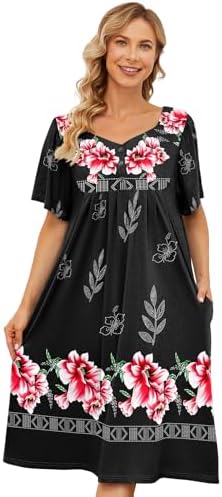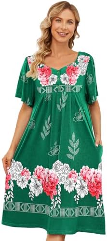 House Dresses for Women with Pockets Moo Moo Nightgown Short Sleeve Mumu Dress Lounge Dress S-3XL
