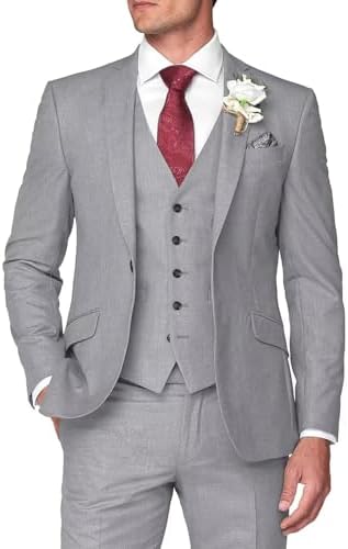 HUUTOE Men's 3 Piece Suit Slim Fit Business Wedding Groomsmen Prom Suits One Button Blazer Jacket Vest Pants Tuxedo Set