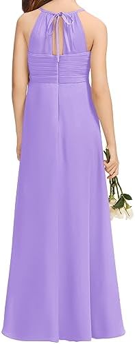 Imily Bela Girls A-Line Halter Dress Junior Bridesmaid Flower Girl Flowy Chiffon Maxi Dresses Wedding Party Pageant Gown