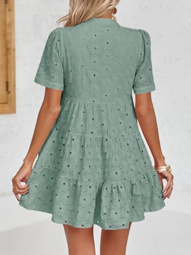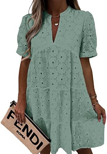 Imily Bela Womens Summer Eyelet Babydoll Dress Short Sleeve V Neck Tunic Dress