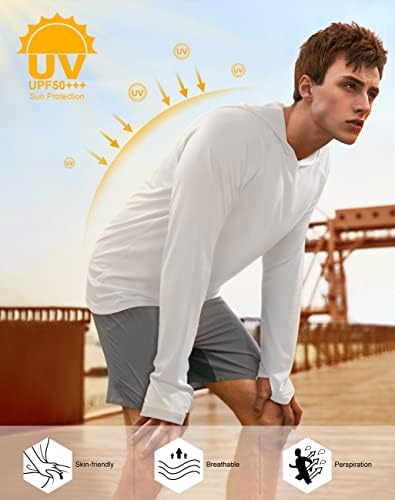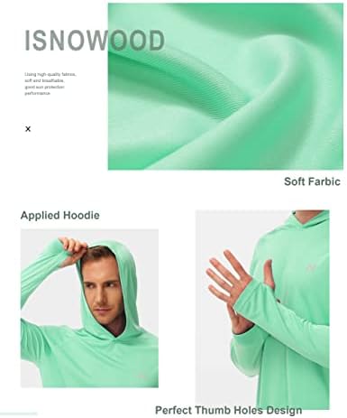 isnowood Sun Shirt UPF 50+ Men's Fishing Long Sleeve UV Protection Hoodie Hiking Rash Guard Swimming Running