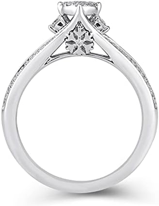 Jewelili Enchanted Disney Fine Jewelry 10K White Gold 1/3 Cttw Diamond Elsa Snowflake Engagement Ring