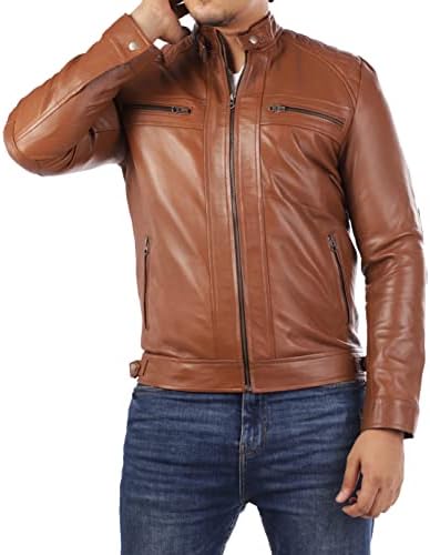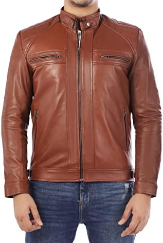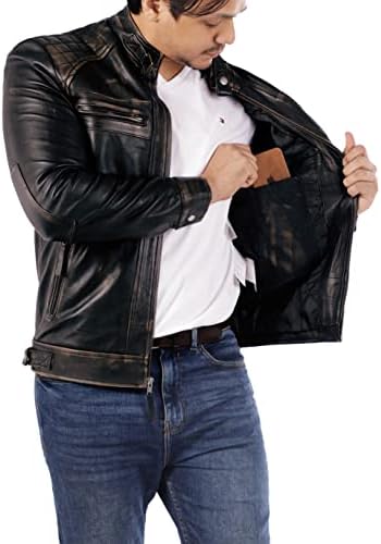 Jild Signature Diamond Style Lambskin Leather Jacket Men - Premium Leather Café Racer Vintage Look Motorcycle Jacket Men