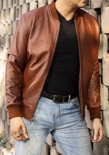 Jild Varsity Style Leather Bomber Jacket Men - Genuine Lambskin Men's Casual Fashion Classic MA-1 Leather Jacket
