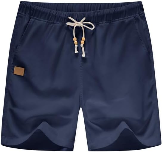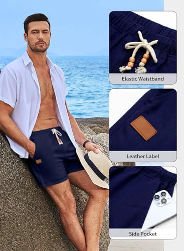 JMIERR Mens Casual 5"/ 7" Cotton Linen Shorts - Elastic Waist Drawstring Summer Beach Shorts with Pockets