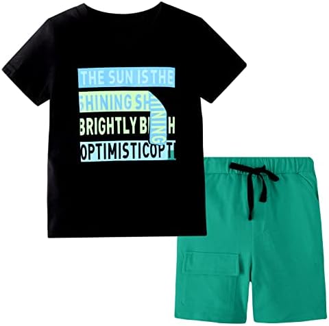 Jobakids Boy Summer Outfits Toddler Short Sets Cotton T-Shirt and Pants 2-Piece Clothes