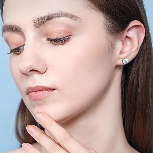 Kainier Women's 14K Gold Plated CZ Stud Earrings Simulated Diamond Round Cubic Zirconia Ear Stud Set(5 Pairs)
