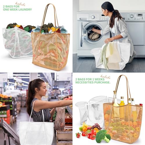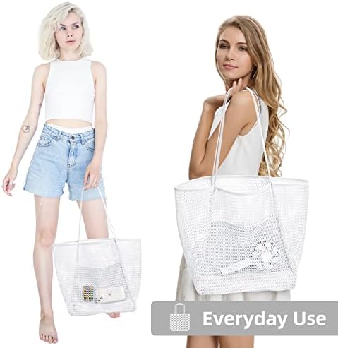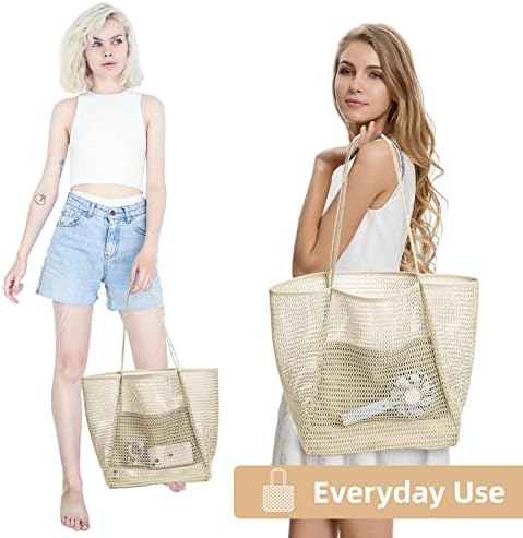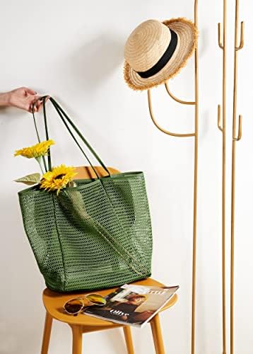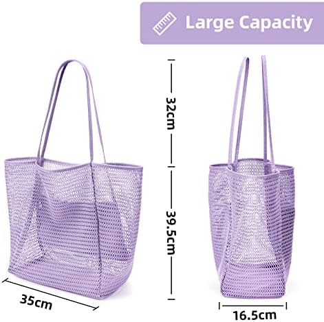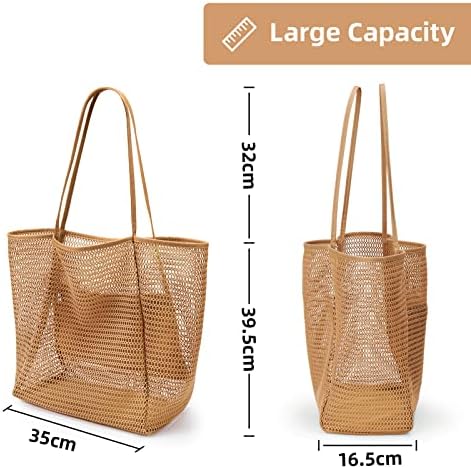 KALIDI Beach Mesh Tote Bag, Casual Tote Bag Hobo Women Foldable MAX 23L Shoulder Bag For Beach Picnic Vacation