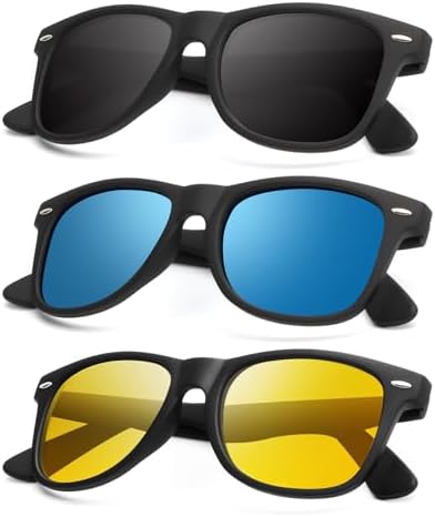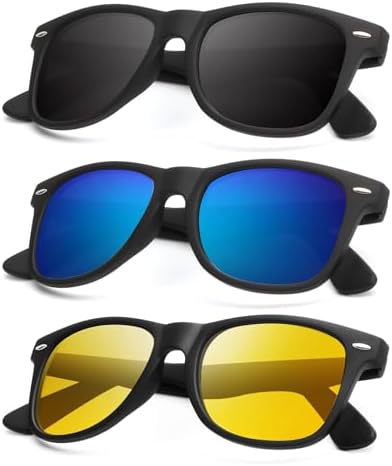 KALIYADI Polarized Sunglasses for Men and Women Matte Finish Sun glasses Color Mirror Lens UV Blocking (3 Pack)