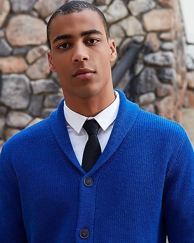 Kallspin Men's Wool Blend Shawl Collar Cardigan Sweater Button Down Knitwear with Pockets