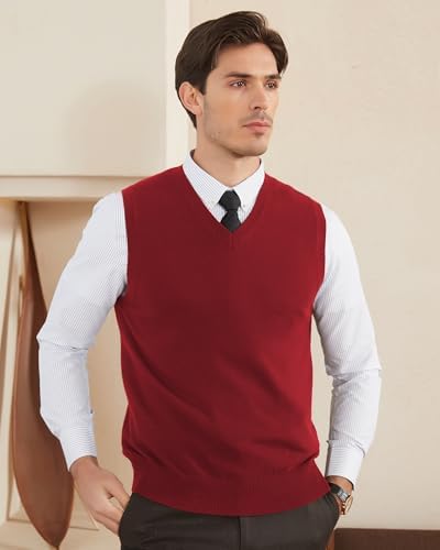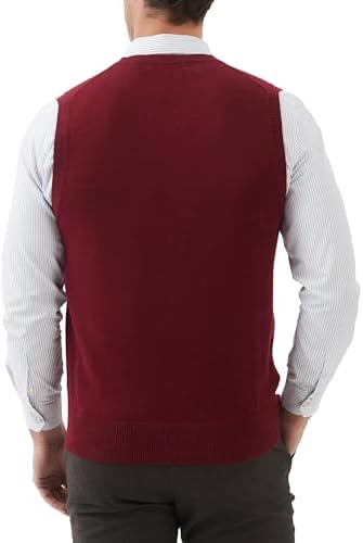 Kallspin Men's Wool Blended Vest Sweater Relaxed Fit V Neck Sleeveless Knitted Pullover