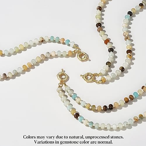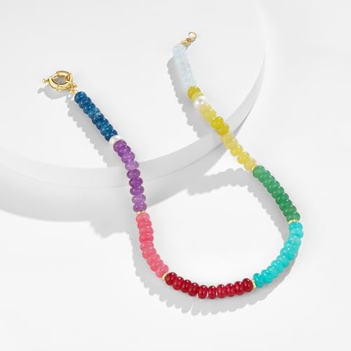KissYan Beaded Gemstone Necklace for Women, Colorful Boho Bead Choker Necklace Natural Stone Freshwater Pearl Surfer Beach Necklace 14K Gold Plated Summer Handmade Jewelry