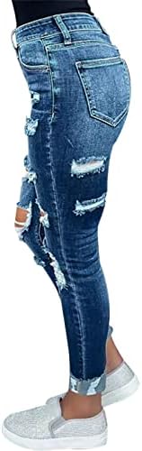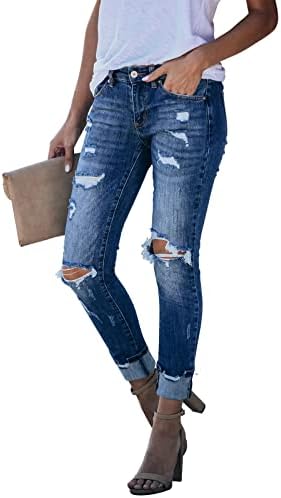 Women's Ripped Destroyed Skinny Jeans & Jeggings Pull-On Elastic Waist Stretch Denim Pants Regular-Plus Size