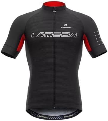 LAMEDA Men's Cycling Jersey Breathable Lightweight Short Sleeve Elastic Pro Road Bike Shirt Full Zip