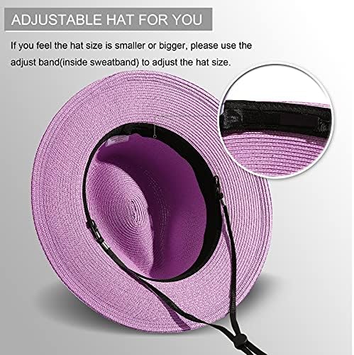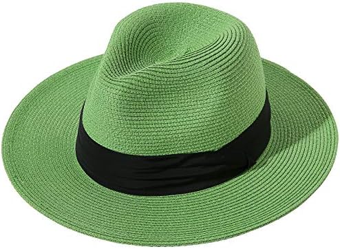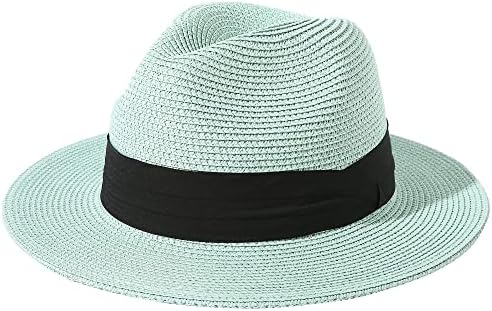 Lanzom Women Wide Brim Straw Panama Roll up Hat Fedora Beach Sun Hat UPF50+