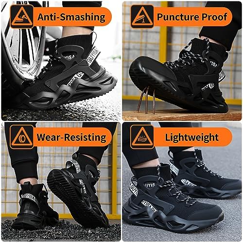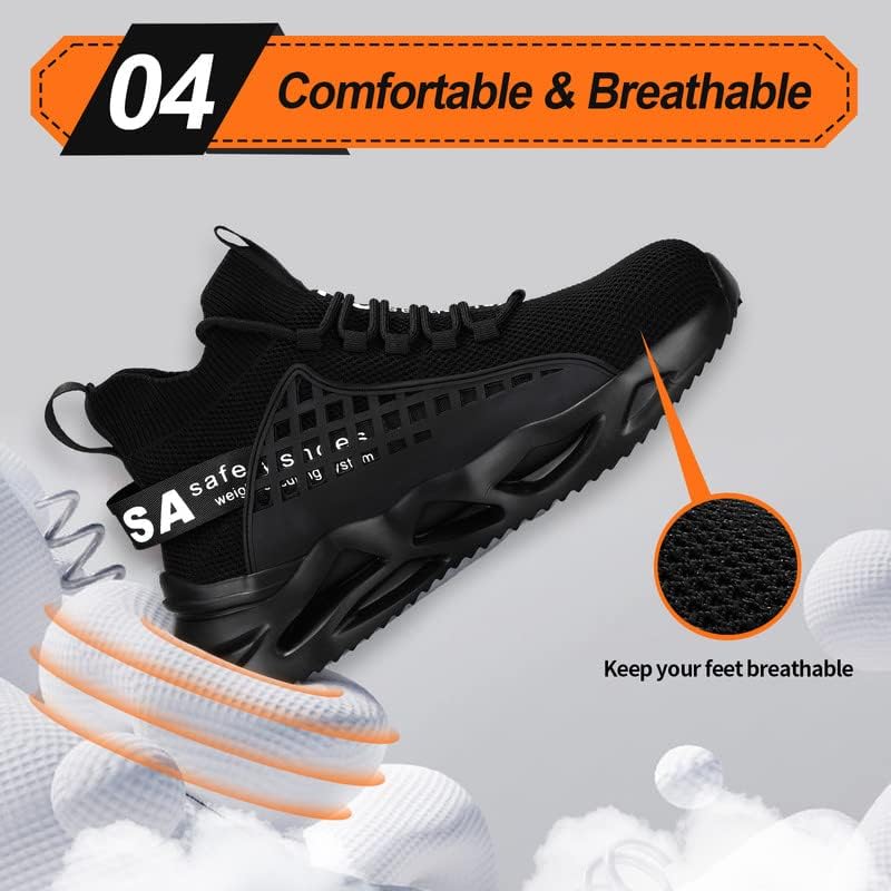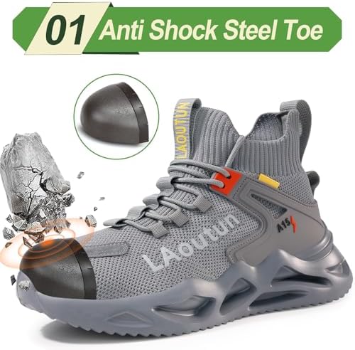 LAoutun Steel Toe Shoes for Men Women Work Shoes Safety Sneakers Shoes Comfortable Lightweight Puncture Proof Slip on Indestructible Work Shoes