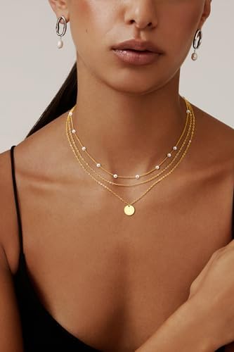 Layered Gold Necklaces for Women, Stackable Dainty 14K Real Gold Plated/Silver Chain Necklace Layering Beach Cute Fashion Pendant Choker Necklaces Trendy Jewelry Set Gifts for Women Teen Girls