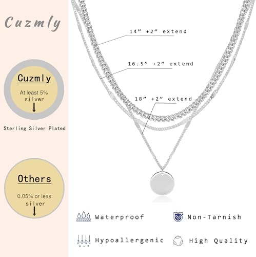 Layered Silver Necklaces for Women, Sterling Silver Stackable Stack Choker Necklaces for Women Trendy Layering Circle Pendant Chain Necklace Set Jewelry for Women