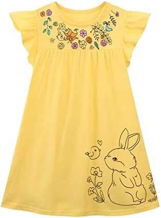 Little Girls Short Sleeve Dresses Easter Summer Cotton Casual Skater Swing Twirly Sundress