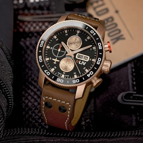LIV P-51 Titanium 46MM Swiss Automatic Day-Date Chrono Men's Watch - Unidirectional Ceramic Bezel- High-Grade Titanium Case - Sapphire Crystal