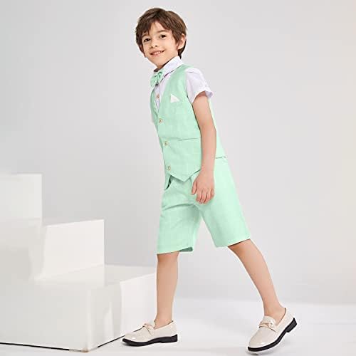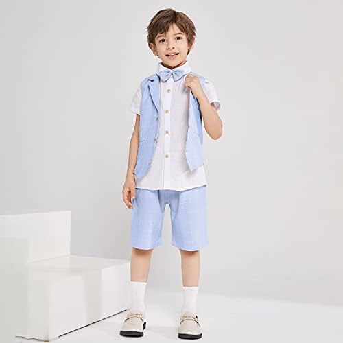 LOLANTA Summer Boys Suit Dress Clothes Kids Wedding Ring Bearer Outfit 4Pcs Shirt Vest Shorts Set