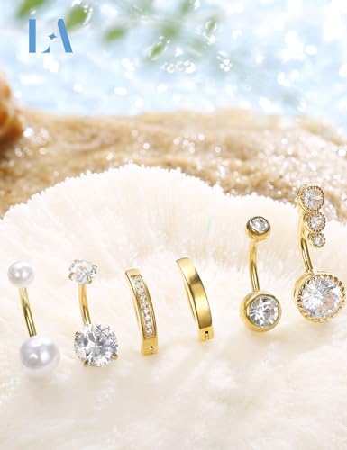 LOLIAS 6Pcs Silver/Gold Plated Belly Button Rings Surgical Stainless Steel Belly Rings CZ Clicker Belly Button Piercings for Women Navel Piercings Pack,Silver/Gold