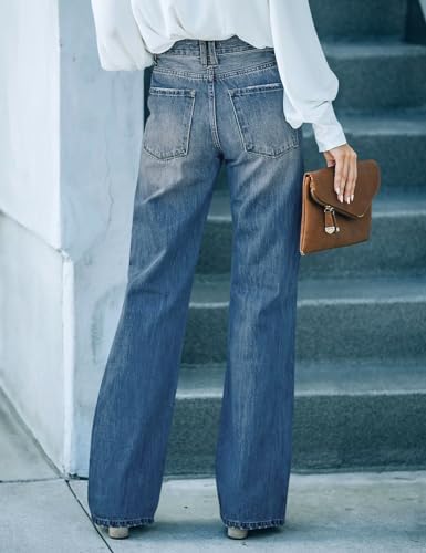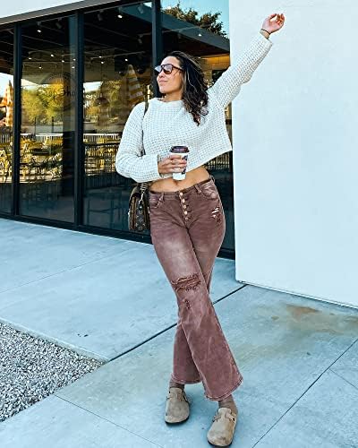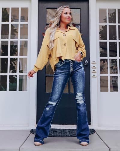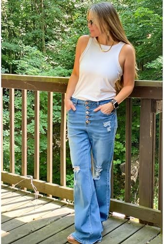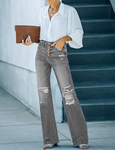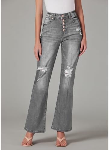 LookbookStore High Waisted Ripped Flare Jeans for Women Distressed Bell Bottom Jeans Wide Leg Pants