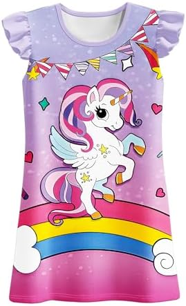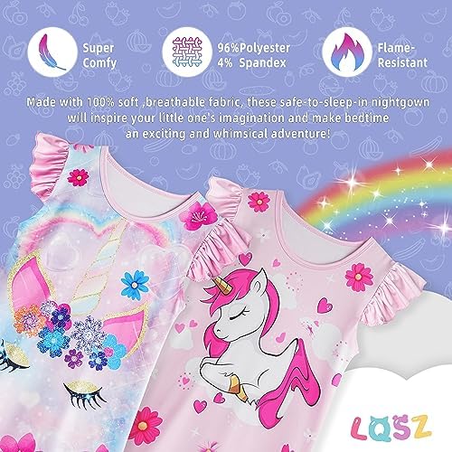 LQSZ 2Pcs Girls Nightgowns 3-10 Years Flutter Short Sleeves Nightdress Nightie Dress Sleepwear Pajamas for Little Girls