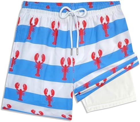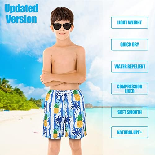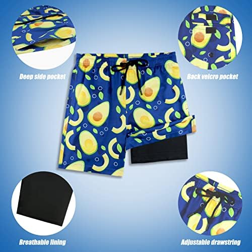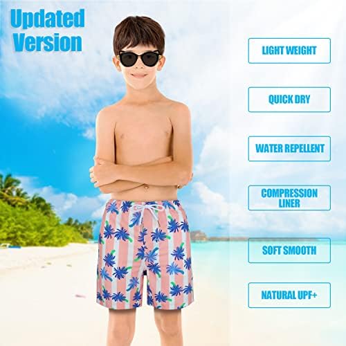 LUCOWEE Boys Swim Trunks with Boxer Brief Liner Compression Anti Chafe Swimming Shorts Stretchy UPF Quick Dry Swimsuit