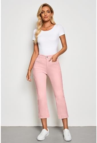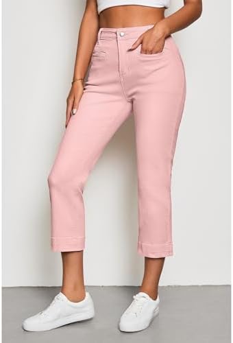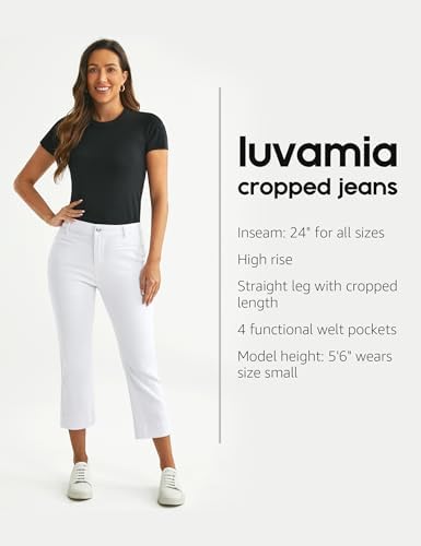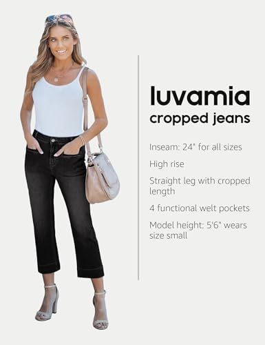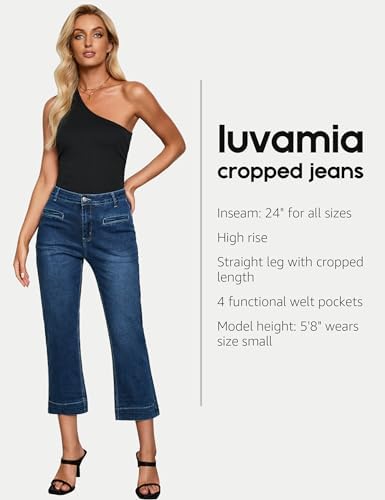 luvamia Capri Jeans for Women High Waisted Slim Straight Stretchy Denim Capris Pants Welt Pockets Casual Cropped Jeans
