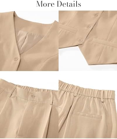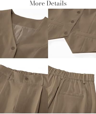 luvamia Pant Suits for Women Dressy Casual 2 Piece Sets Sleeveless Blazer Vest with High Rise Wide Leg Pants Work Office