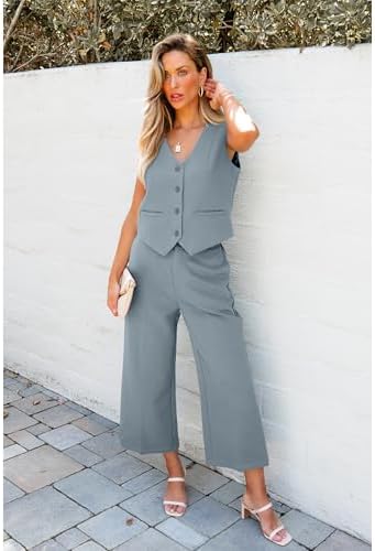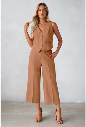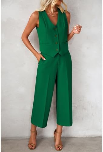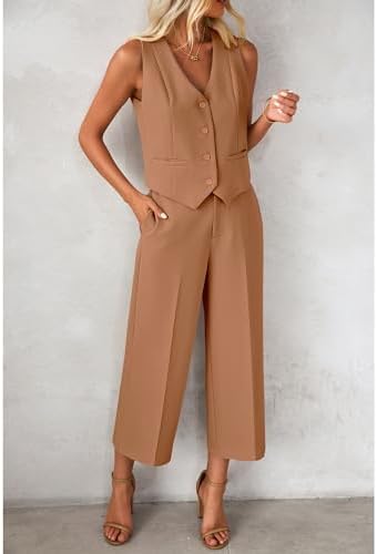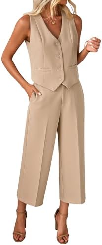 luvamia Pant Suits for Women Dressy Casual 2 Piece Sets Sleeveless Blazer Vest with Wide Leg Capri Pants Work Outfit