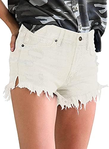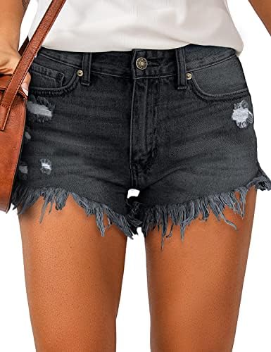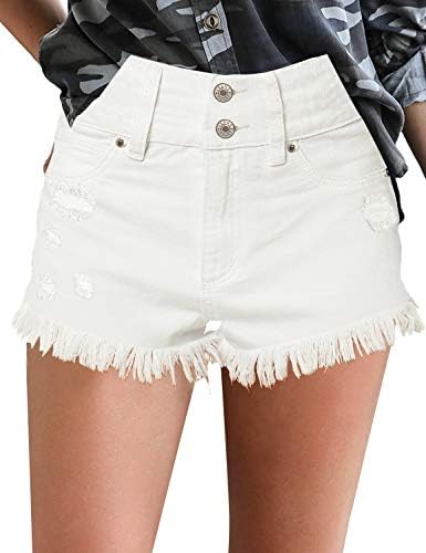 luvamia Women Casual High Waisted Denim Shorts Frayed Raw Hem Ripped Jeans Shorts