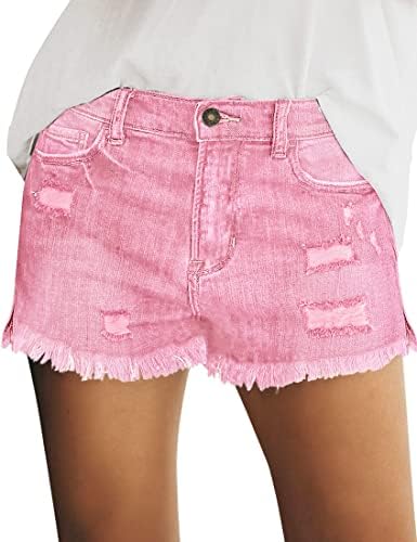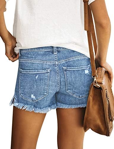 luvamia Women's Casual Mid Rise Denim Shorts Stretch Ripped Raw Hem Jean Shorts