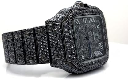 Luxury Black Moissanite Automatic Timepiece for Men 25 Carat Round Diamond Roman Dial Iced Look Premium Stainless Steel Statement Gift for Stylish Gents & Women
