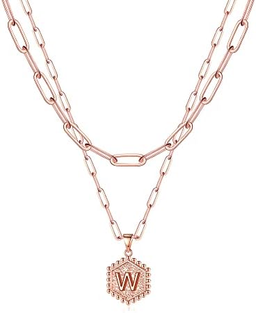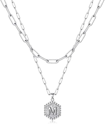 M MOOHAM Dainty Gold Necklace for Women - 14K Solid Gold Over Layering Necklaces for Women Cute Hexagon Letter Initial Necklaces for Women Gold Layered Necklaces for Women Jewelry Gifts