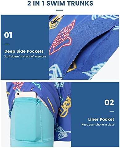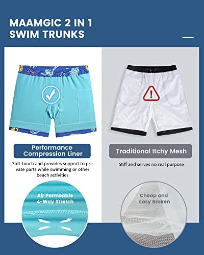 maamgic Boys Swim Trunks with Compression Liner Toddler Boy Swimsuit Quick Dry 4-Way Stretch Swimming Trunks