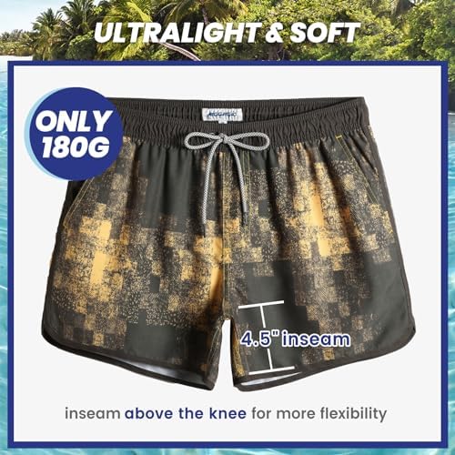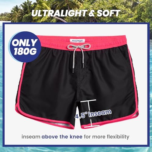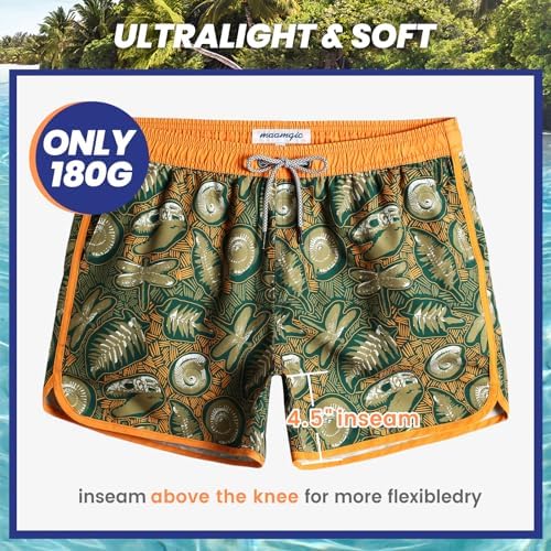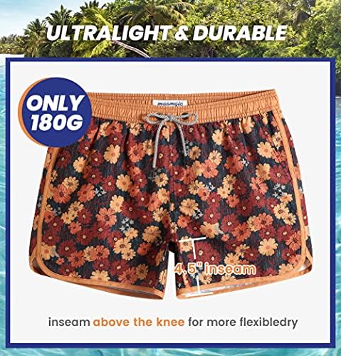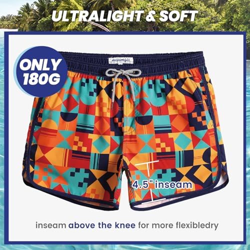 maamgic Mens Boys Short 80s 90s Vintage Swim Trunks with Mesh Lining Quick Dry Swim Suits Board Shorts